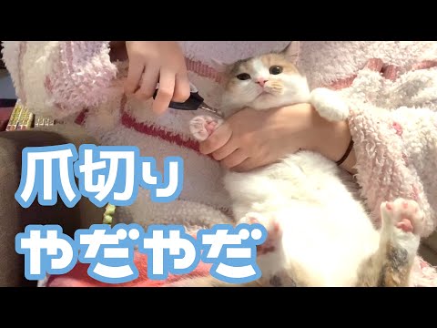 不満げに爪を切られる猫が可愛い【Cute cat dissatisfied with claws】